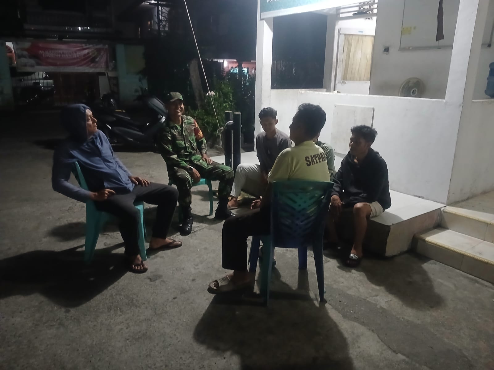 Babinsa Sertu M. Fauzi Bersama Pemuda Perkuat Keamanan Lewat Patroli Ronda Malam di Pos Siskamling Merak.