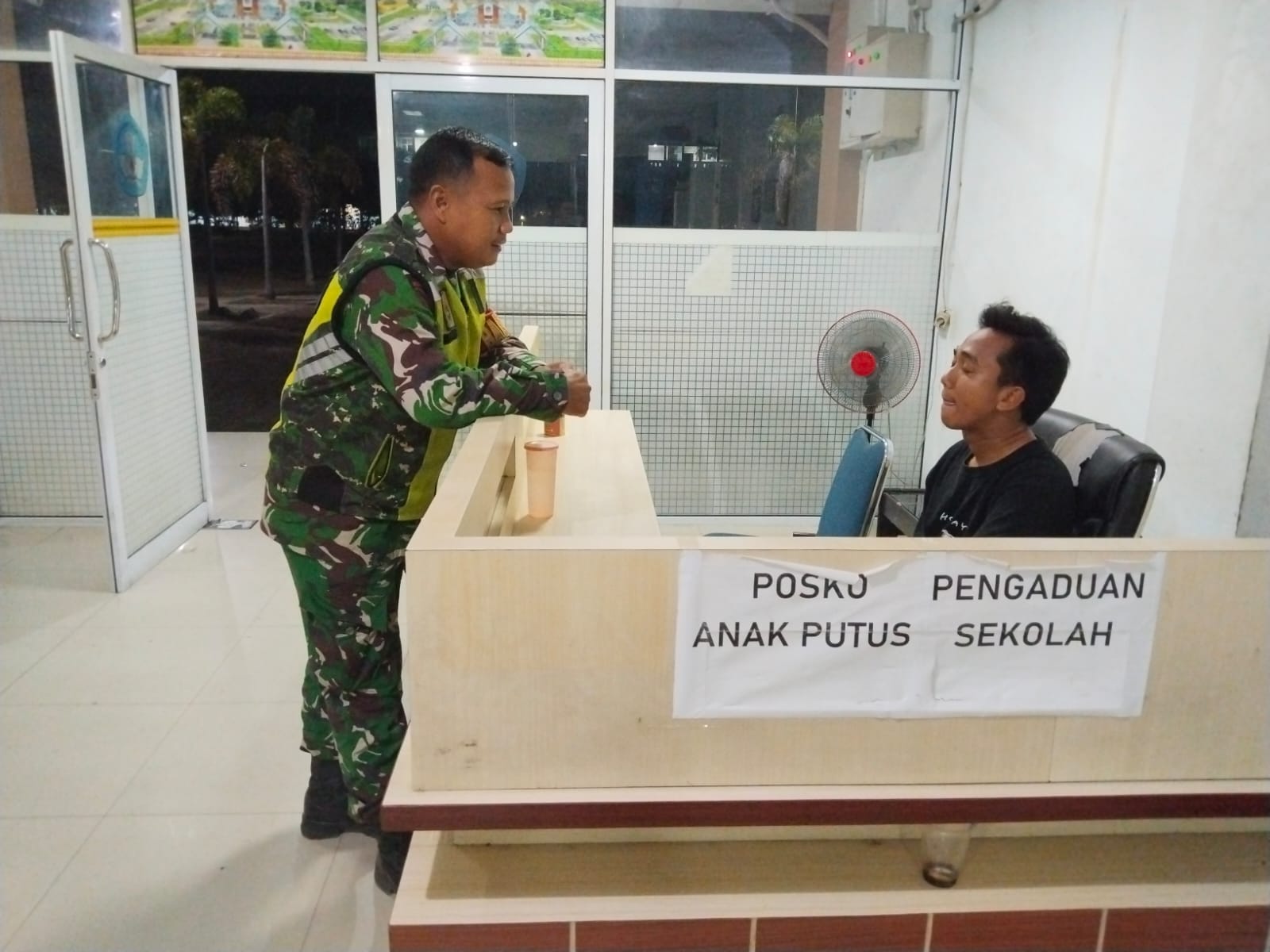 Babinsa Sertu Parjo Gelar Patroli Malam di Disdik Pekanbaru, Ajak Warga Jaga.