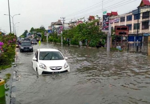 di Pekanbaru terendam banjir. Termasuk juga beberapa ruas jalan.