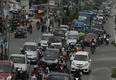kendaraaan terjebak kemacetan, dan hanya bisa berjalan.