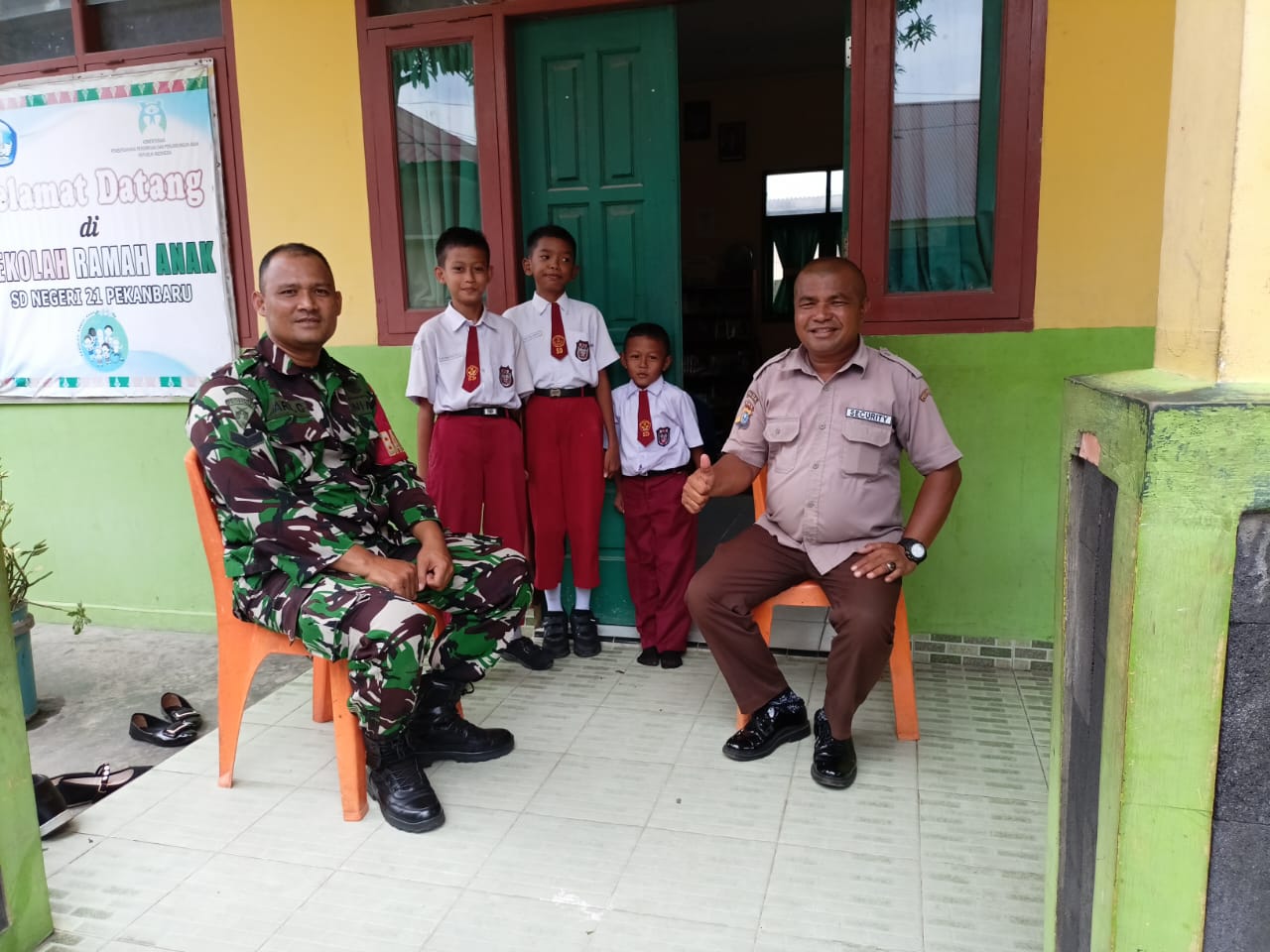 Hangat dan Penuh Tawa, Babinsa Maharatu Ajak Siswa SDN 21 Pekanbaru Belajar Disiplin Lewat.