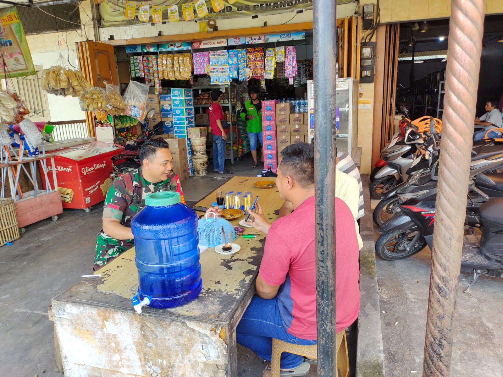 Disela Patroli Kamtibmas, Babinsa Sertu Arman Jalin Keakraban Bersama Warga di Warung Pinggir.