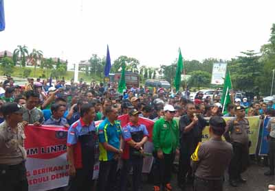 Ratusan pekerja buruh padati halaman Kantor Disnaker Inhu dan Kantor Bupati Inhu, Jumat (3/5/2019)..