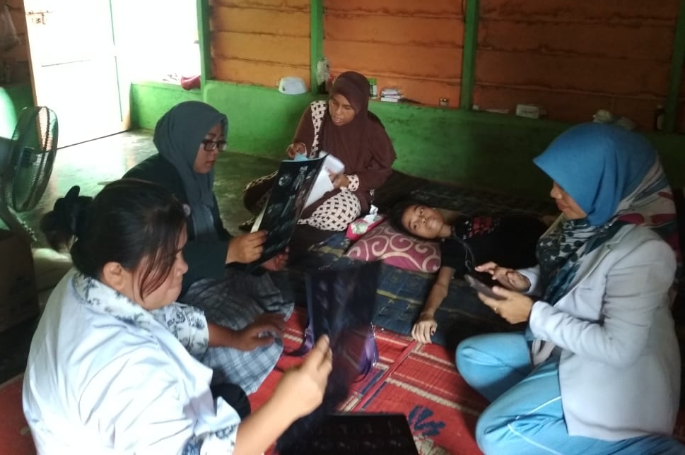 Ikatan Dokter Indonesia (IDI) Cabang Rokan Hilir (Rohil) kunjungi Rizka Jumita Sari (14) Siswi kelas I MTsN,.