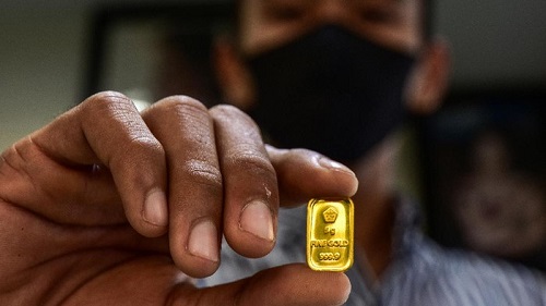 Harga emas Antam hari ini kembali turun. Emas Antam hari ini dijual Rp