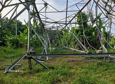 Besi penyangga tower PLN di Desa Kubang Jaya Kecamatan Siak Hulu Kabupaten Kampar, dicuri. Tindakan tak terpuji itu mengakibatkan robohnya.