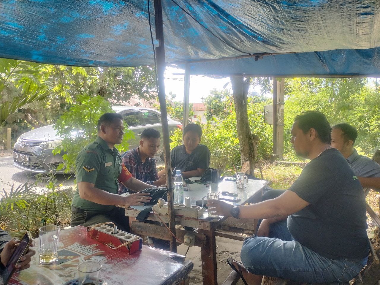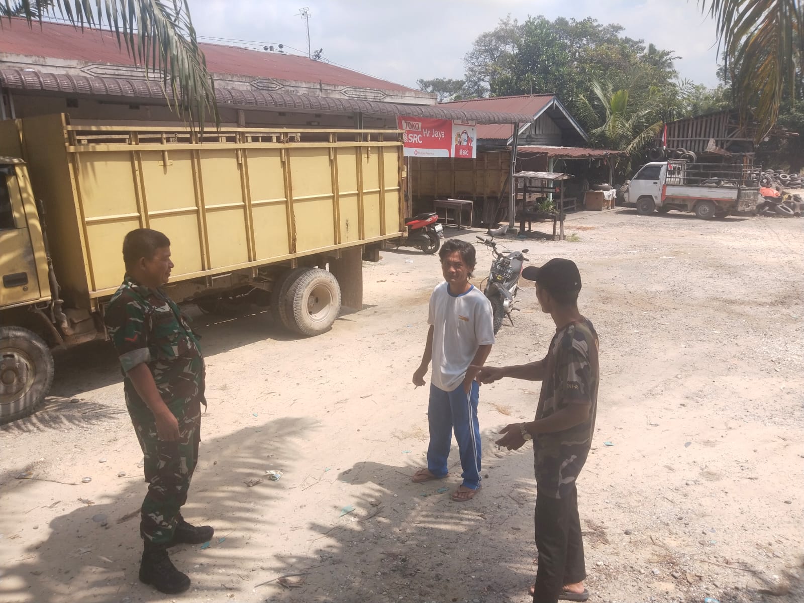Dalam rangka menciptakan situasi kamtibmas pada saat Pilkada serentak, Personel Koramil 08/Rumbai Barat Kodim 0301/Pekanbaru menyambangi kantor Panwascam Rumbai Barat Jalan Sri.