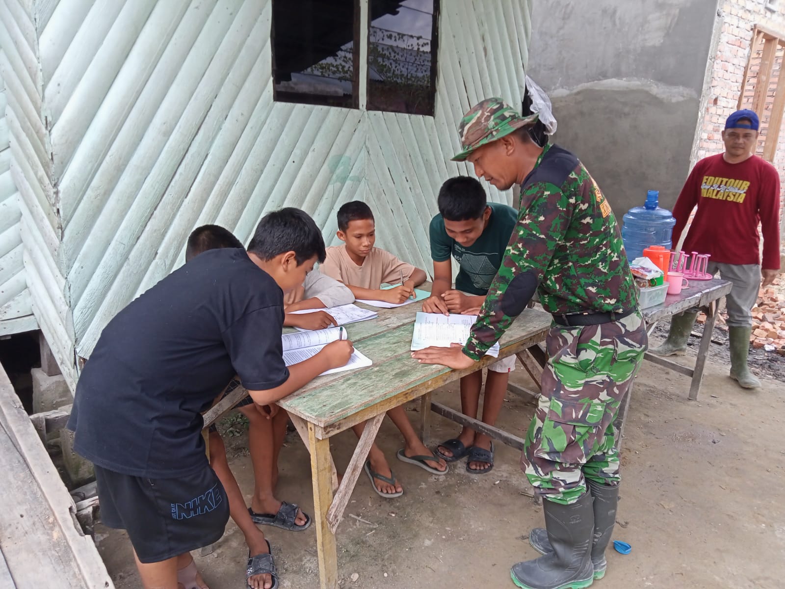 Tidak ada waktu yang terbuang percuma. Kegiatan TNI Manunggal Masuk Desa (TMMD) ke-120 Kodim 0301 Pekanbaru terus diisi dengan kegiatan positif. Salah satunya, bermain sambil belajar dengan.