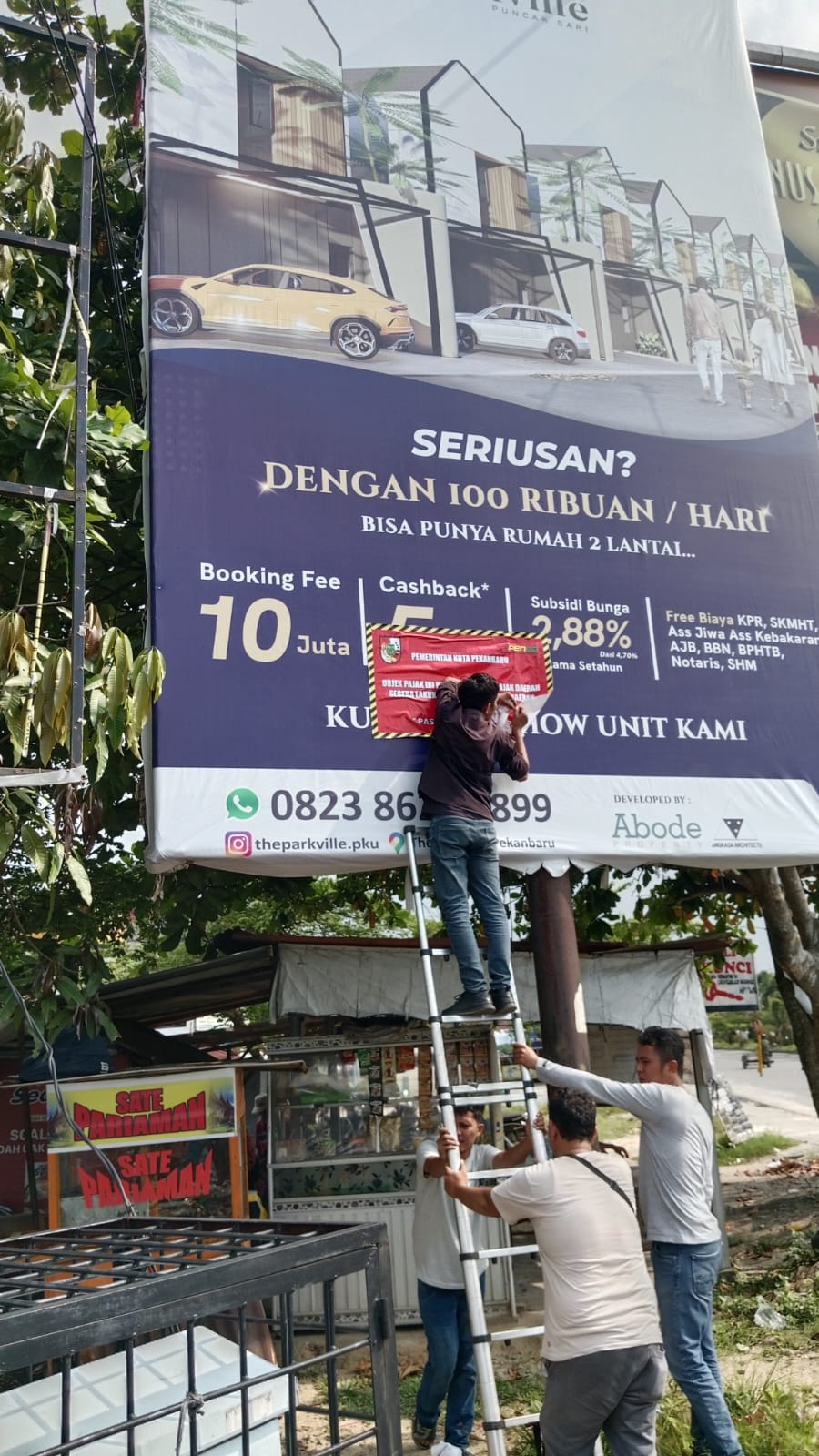 Rusak Tatanan Keindahan Kota, Tim Satgas Bapenda Pekanbaru Tertibkan Reklame Habis Masa.