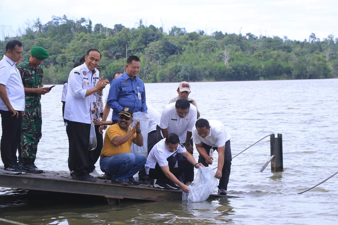 Tebarkan Benih Ikan di Danau Buatan, Pj Walikota Ajak Menjaga Ekosistem.