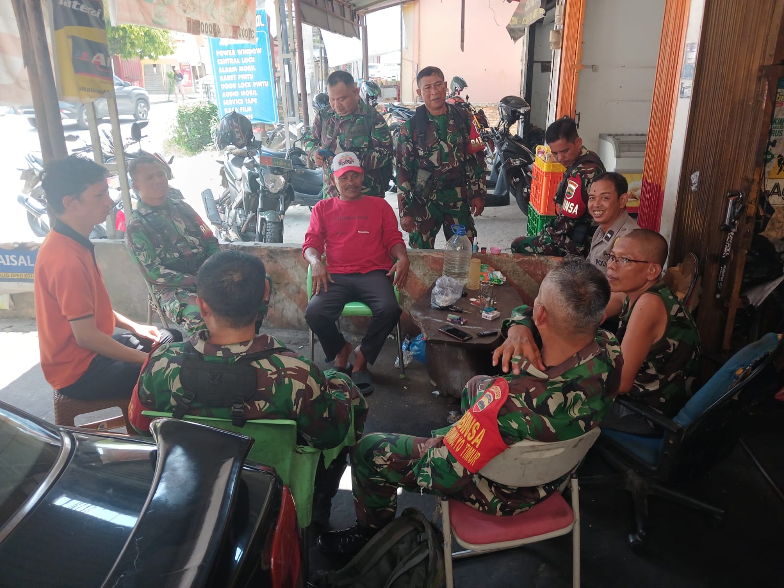 Personel Koramil 02 Kota dan Bhabinkamtibmas Komsos Bersama Warga Bahas.