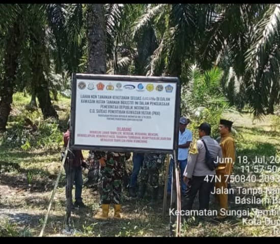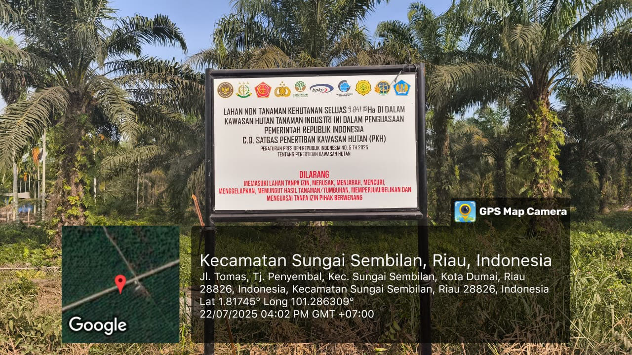 Pemasangan plang Satuan Tugas Penertiban Kawasan Hutan (Satgas PKH) bentukan Presiden Prabowo Subianto berdasarkan Perpres Nomor : 5 Tahun 2025 Tentang Penertiban Kawasan Hutan.