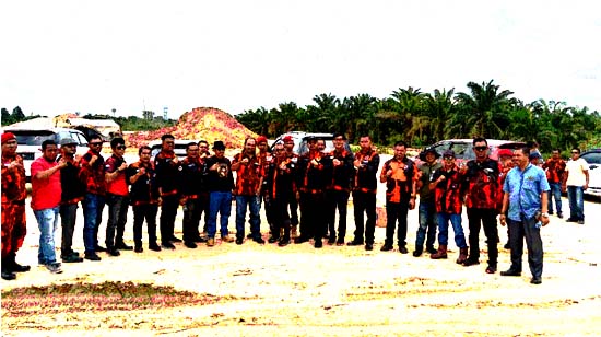 Badan Penyuluhan dan Pembelaan Hukum (BPPH) Majelis Pimpinan Wilayah (MPW) Pemuda Pancasila (PP) Provinsi Riau memasang plang penguasaan fisik tanah milik Ahli waris Nurdin yang sebelumnya diserobot oleh pihak perusahaan PT Agro Murni untuk jalur.