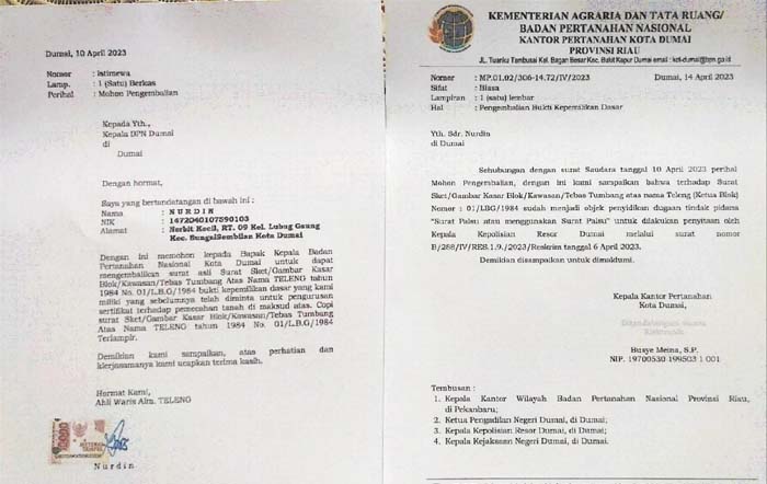 Munculnya permasalahan Keagrariaan di Kelurahan Lubuk Gaung dan Kelurahan Tanjung Penyembal Kecamatan Sungai Sembilan Kota Dumai diduga kuat ulah mafia tanah dan mafia surat.