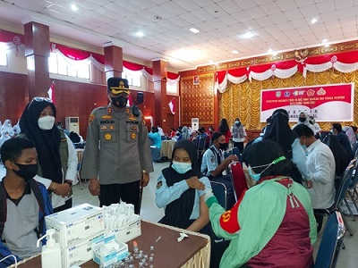 Pemerintah Kota (Pemko) Dumai bersama TNI-Polri gelar vaksinasi Covid-19 bagi peserta didik usia 12 hingga 17 Tahun. Vaksinasi dipusatkan di Gedung Pendopo Jalan Putri Tujuh Kota Dumai, Rabu.