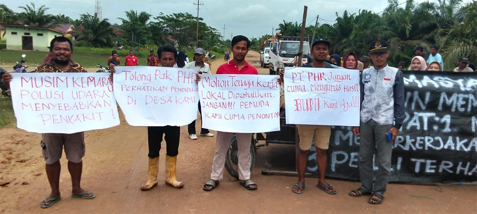 Puluhan warga Kepenghuluan Teluk Berumbun Kecamatan Tanah Putih Rokan Hilir Rabu (18/12/2024) dengan membawa spanduk bertuliskan tuntutan melakukan aksi demo.