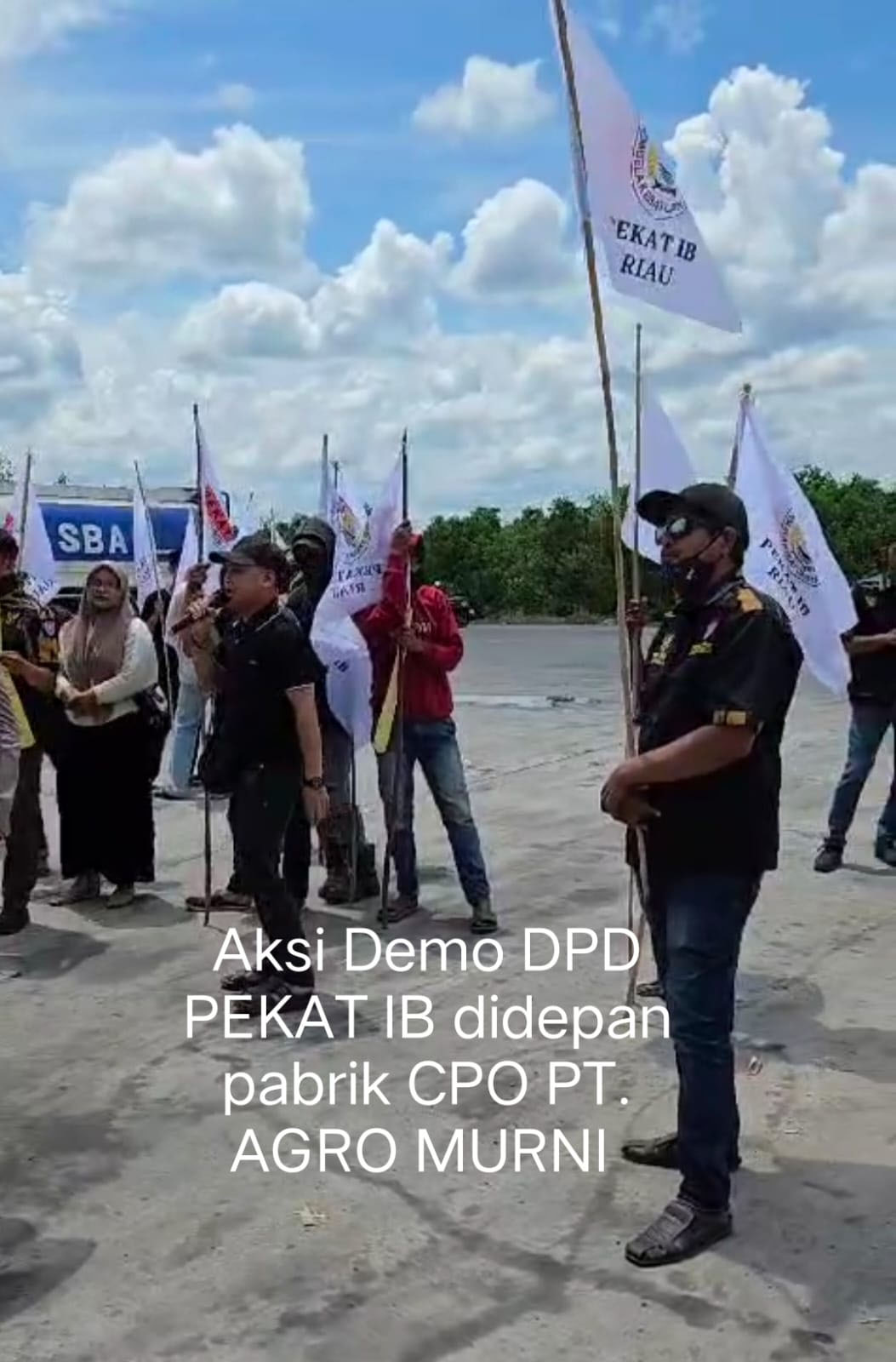Puluhan aggota DPD Pembela Kesatuan Tanah Air Indonesia Bersatu (Pekat.IB) Dumai Selasa 5 November 2024 melakukan aksi didepan PT. Agro.