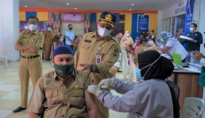 Guna mensukseskan program implementasi vaksin corona, Pemerintah Kabupaten Kampar melakukan vaksinasi secara massal kepada aparatur sipil negara (ASN).