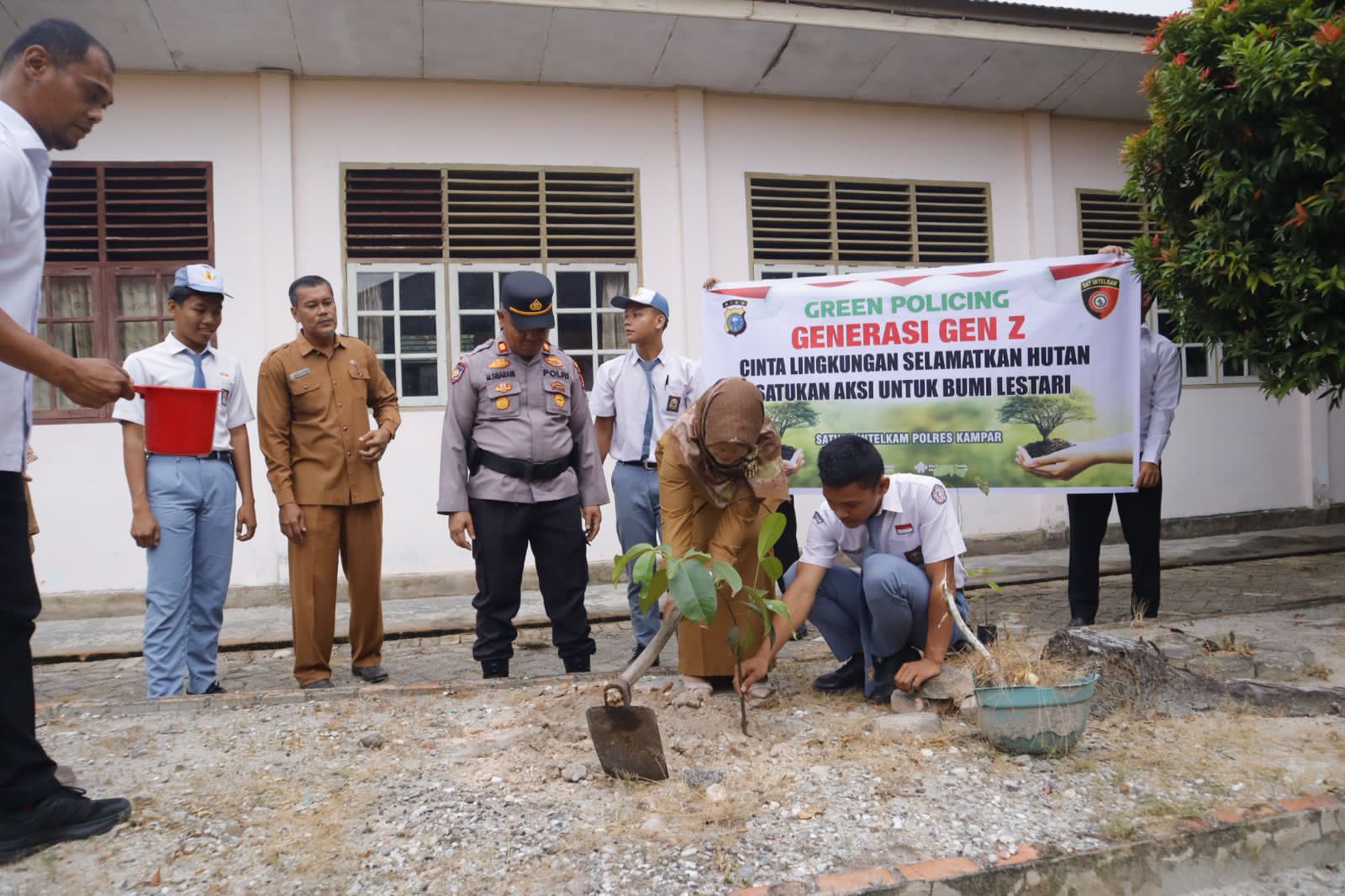 SMAN 1 Salo Dihijaukan, Polres Kampar Tanamkan Nilai Peduli Lingkungan pada.