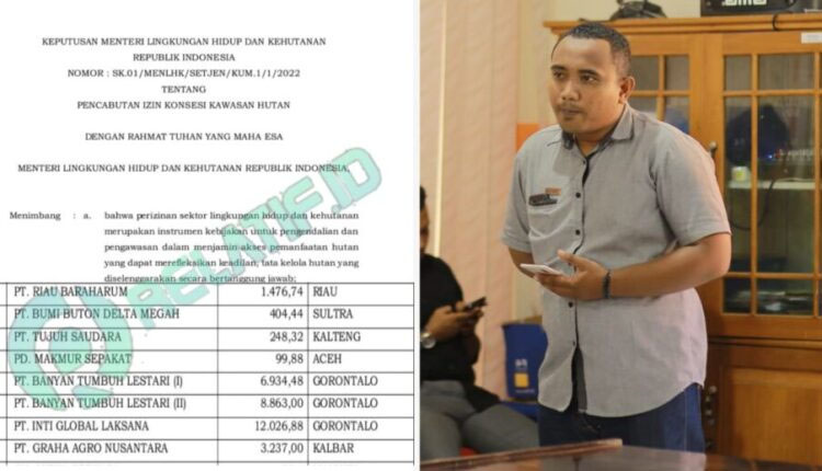 POHUWATO – Diduga izin konsesi kawasan hutan yang dimiliki PT. Inti Global Laksana (IGL) yang berada di Kecamatan Popayato, Kabupaten Pohuwato, dicabut berdasarkan keputusan menteri lingkungan hidup dan kehutanan Republik Indonesia. Pencabutan izin tersebut tertuang dalam SK nomor : SK.01/MENHLK / SETJEN / KUM.1 / 1/2022 tentang pencabutan izin konsesi kawasan hutan.Dari banyaknya perusahaan, PT.IGL, PT.BTL I, PT.BTL II, termasuk dicabut izinnya.