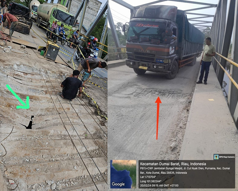 Perawatan Jembatan Sungai Mesjid Kelurahan Bangsal Aceh Dumai dikerjakan secara swakelola oleh Dinas PUPR Provinsi Riau pada awal Januari.