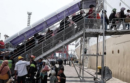 pemudik yang memanfaatkan transportasi sungai dan laut di wilayah