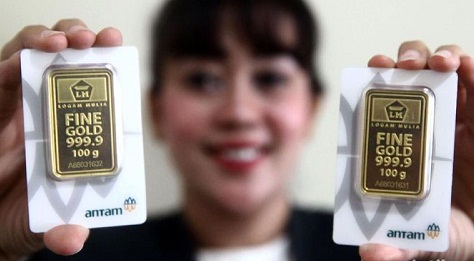 Harga logam mulia atau emas batangan milik PT Aneka Tambang Tbk (Antam)
