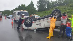 Kecelakaan kembali terjadi di Tol Pekanbaru-Dumai. Satu unit mobil Toyota Fortuner dengan nomor polisi kuning BM1828.