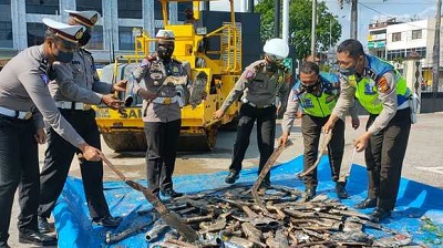 Sebanyak 85 knalpot brong atau tidak standar hasil penindakan dalam Kegiatan Rutin yang Ditingkatkan (KRYD) Cipta Kondisi Polres Dumai.
