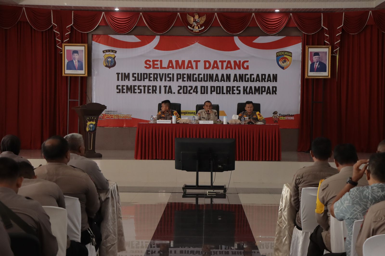 Polres Kampar menerima kunjungan tim supervisi penggunaan anggaran semester I TA. 2024 oleh Ro Rena Polda Riau di Polres Kampar, Jumat (7/6/2024). Kegiatan ini dilaksanakan Aula Sanika Satyawada Polres.