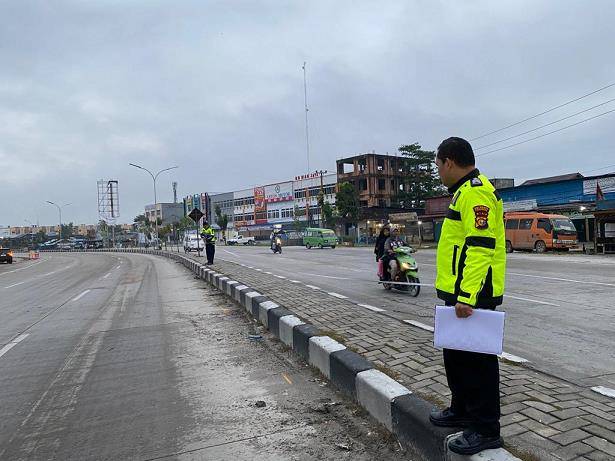 Satu unit dump truk dengan nomor polisi BM 8840 CU terguling di tikungan akses masuk Tol Pekanbaru - Dumai (Permai), Rabu (22/2/2023) sekitar pukul 13.30.
