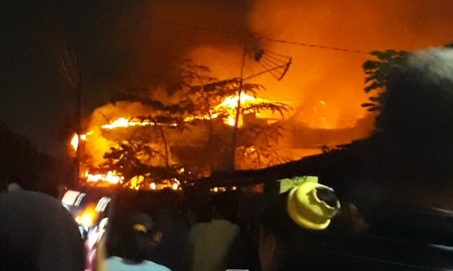 Kebakaran menghanguskan dua bangun di komplek Kantor Dinas Pendidikan (Disdik) Provinsi Riau, Jalan Cut Nyak Dhien, Kota Pekanbaru, Rabu (2/11/2022) malam.