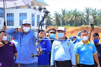 Walikota Pekanbaru Firdaus meresmikan lomba memanah di halaman belakang Gedung Utama Kompleks Perkantoran Tenayan Raya, Minggu.