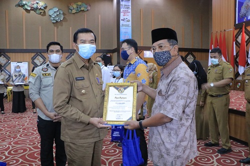 Pemko Pekanbaru memberikan piagam penghargaan kepada tiga perusahaan dan seorang warga yang patuh membayar pajak sepanjang 2020..