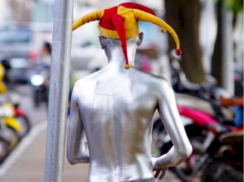 Belakangan ini marak manusia silver berkeliaran di persimpangan traffic light di Kota Pekanbaru, Riau..