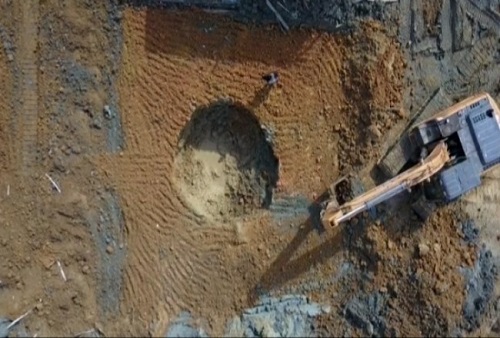 Lubang semburan gas dan lumpur di Pondok Pesantren (Ponpes) Al-Ihsan saat ini sudah mulai dilakukan proses penutupan..