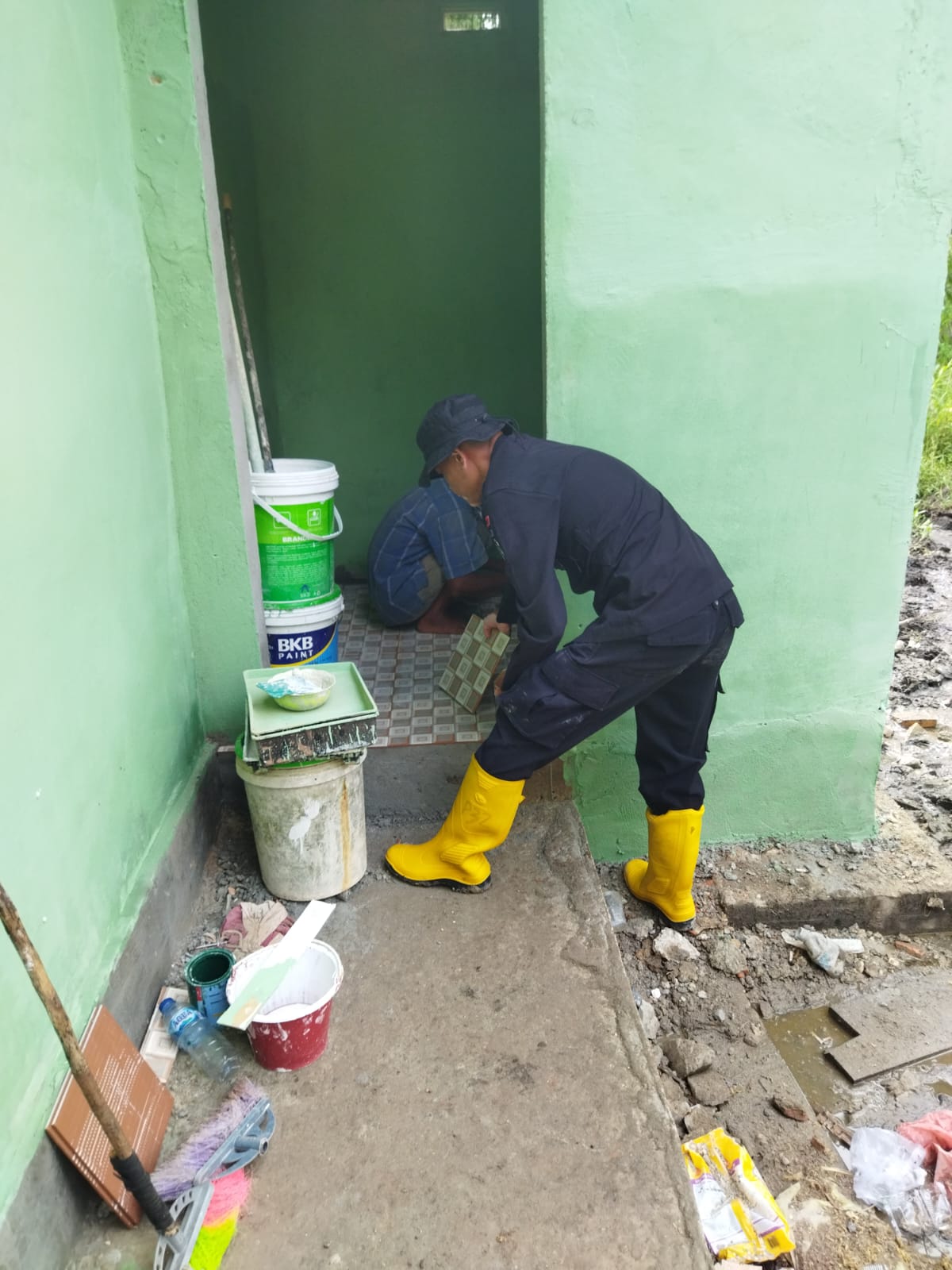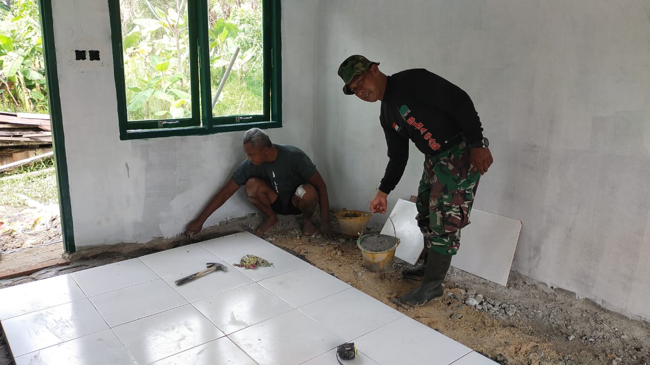 Satgas TMMD Serma Agus Purwanto Lanjut Pemasangan Keramik Lantai RTLH Milik.