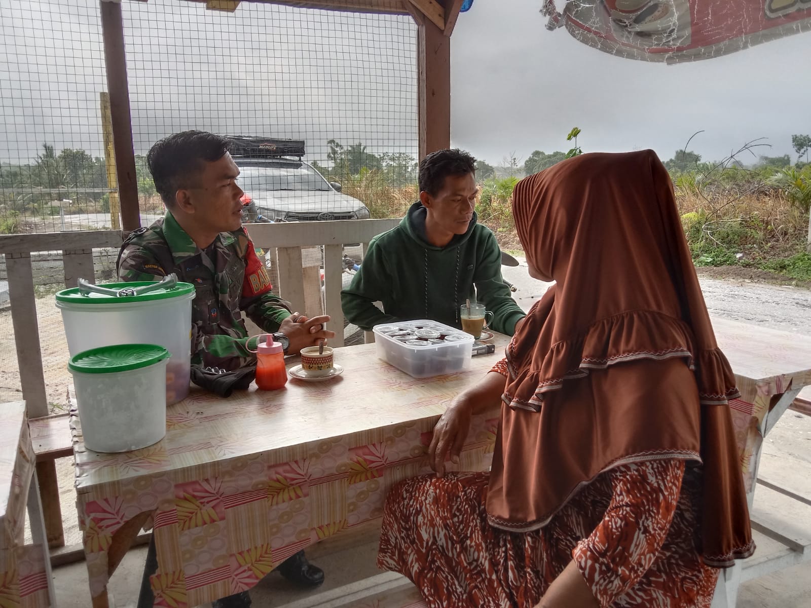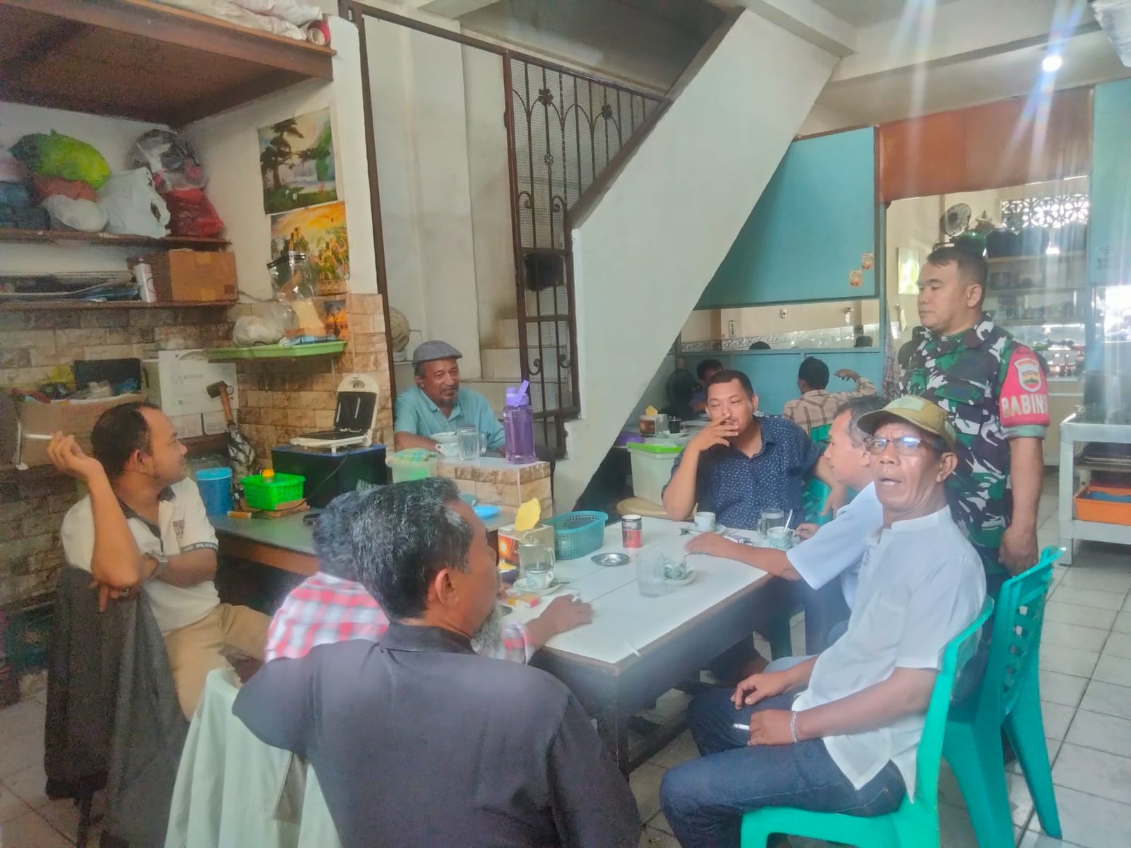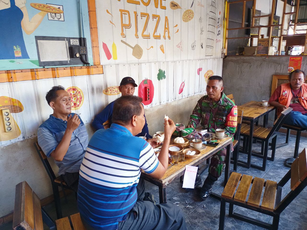 Menikmati sarapan pagi bersama warga di salah satu warung yang berlokasi Jalan Sumatera, merupakan salah satu cara yang dilakukan oleh seorang Bintara Pembina Desa (Babinsa) dalam menjalankan tugas dan.