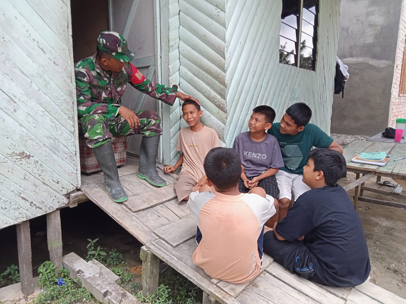 Babina Koramil 02 Kota Kodim 0301 Pekanbaru, Kopda Ario Diansyah melakukan komunikasi sosial dengan anak-anak diwilayah binaannya, Kelurahan Perhentian Marpoyan Kecamatan Marpoyan Damai, Rabu.