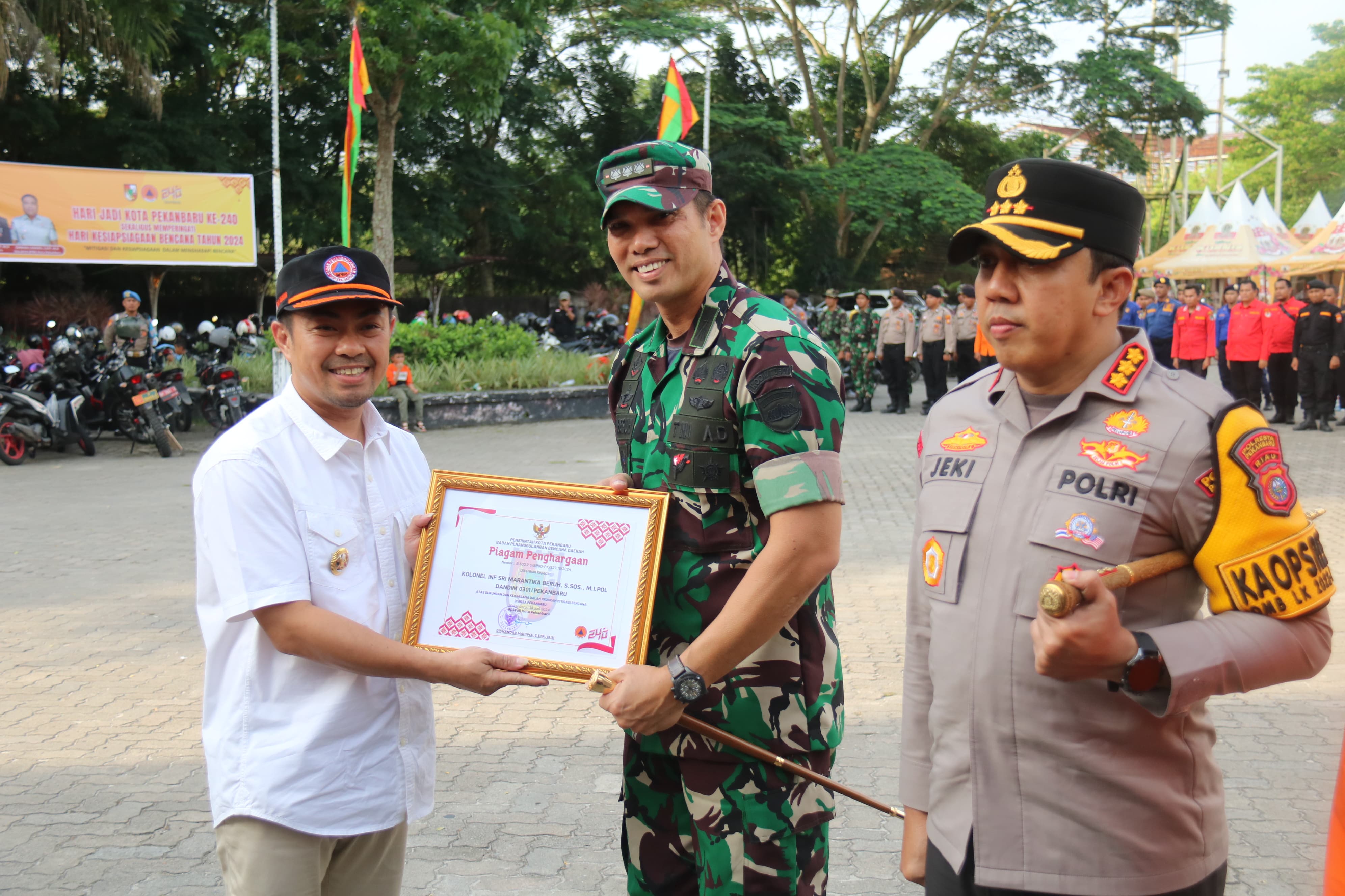 Komandan Kodim 0301 Pekanbaru Kolonel Inf Sri Marantika Beruh, S.Sos, M.I.Pol mendapatkan penghargaan atas partisipasi penanggulangan kebencanaan di Kota.