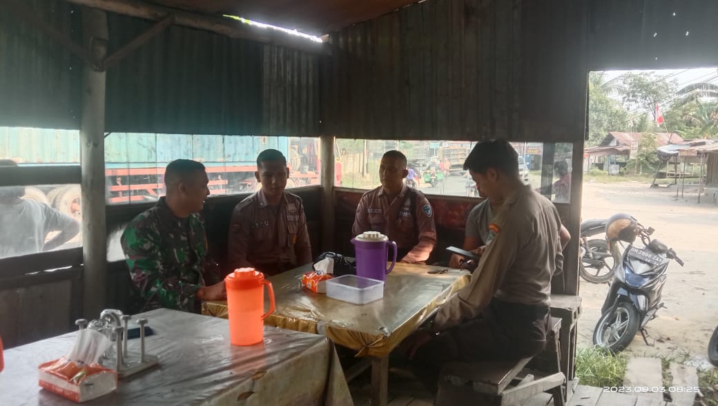 Babinsa Kelurahan Rumbai Bukit Sertu Arianto Marbun melakukan komunikasi sosial dengan warga binaan, di salah satu Kedai Kopi Jalan Sri Indra, Rabu.