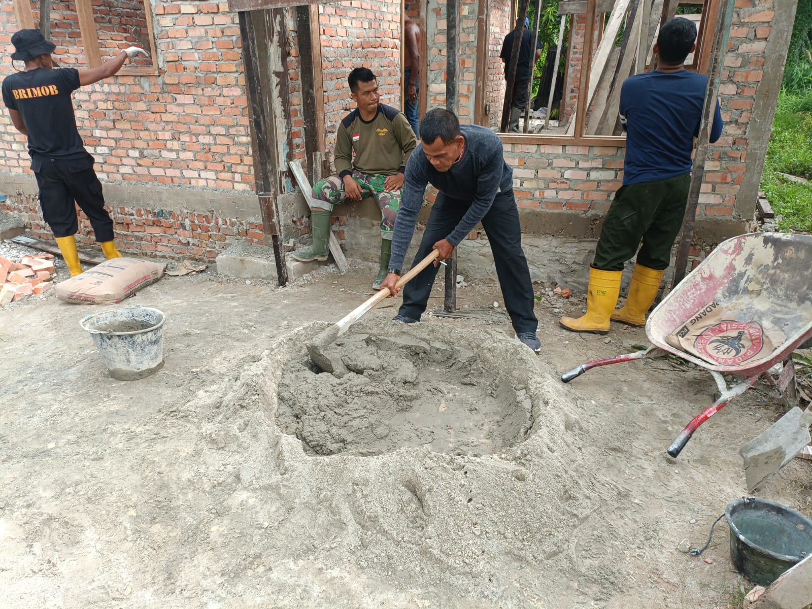 Kebut Mengaduk Bahan Material untuk Plester RTLH Milik Nasrizal, Ini Kata Satgas TMMD Serda Andri Puji.