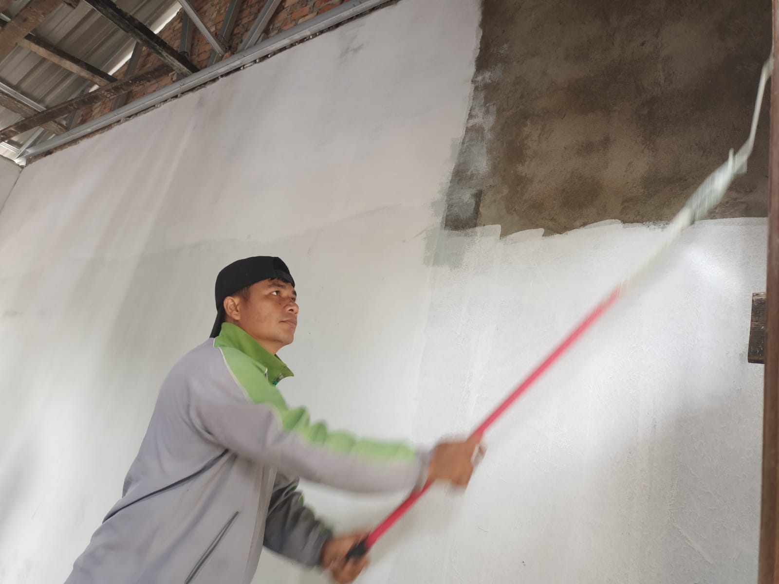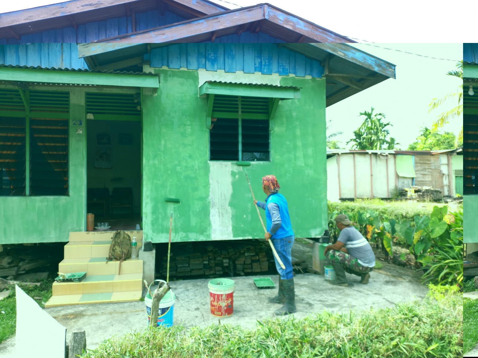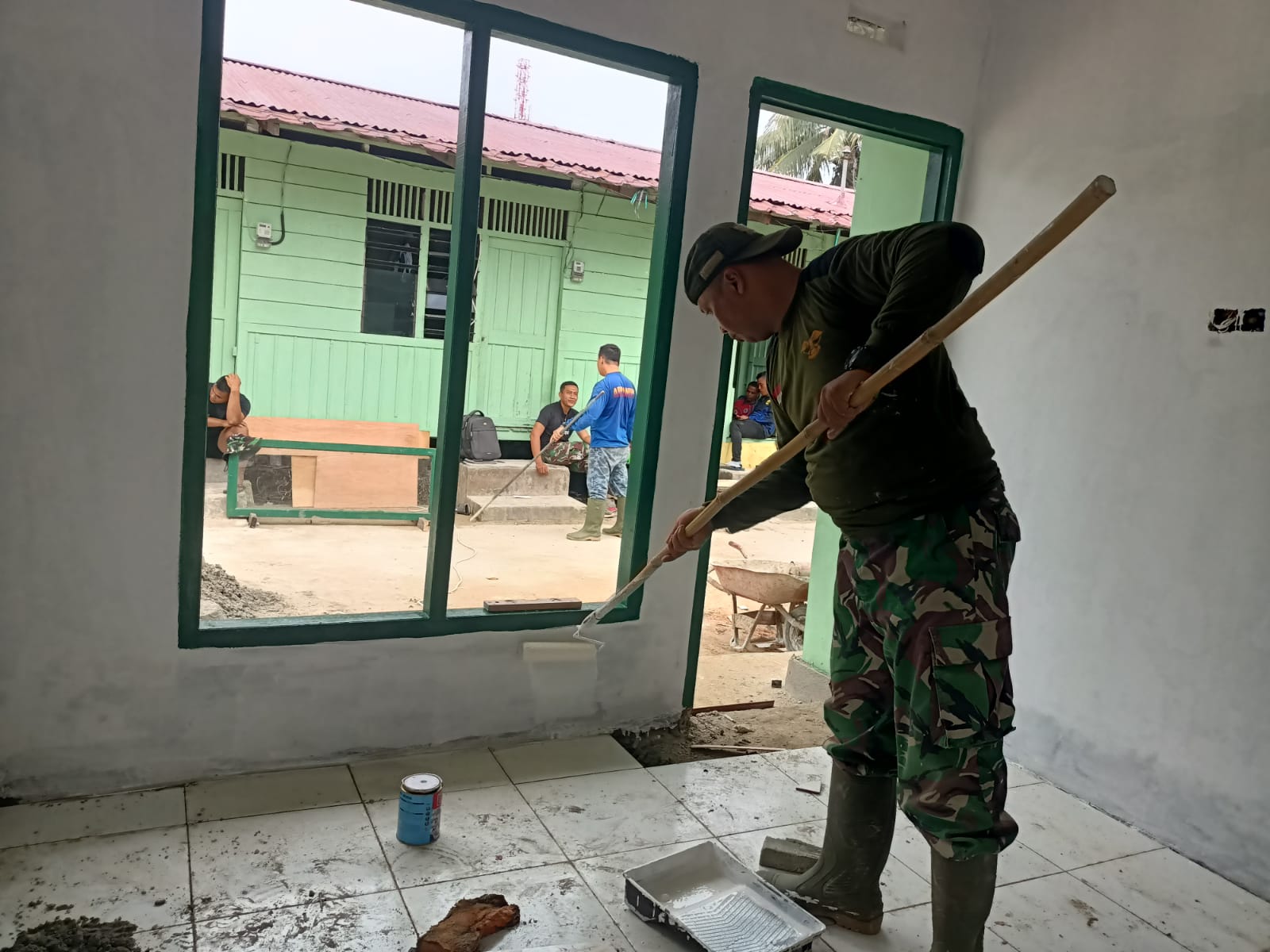 Satgas TMMD Serda GK Sinaga Lakukan Pengecatan Dinding Warna Putih RTLH.