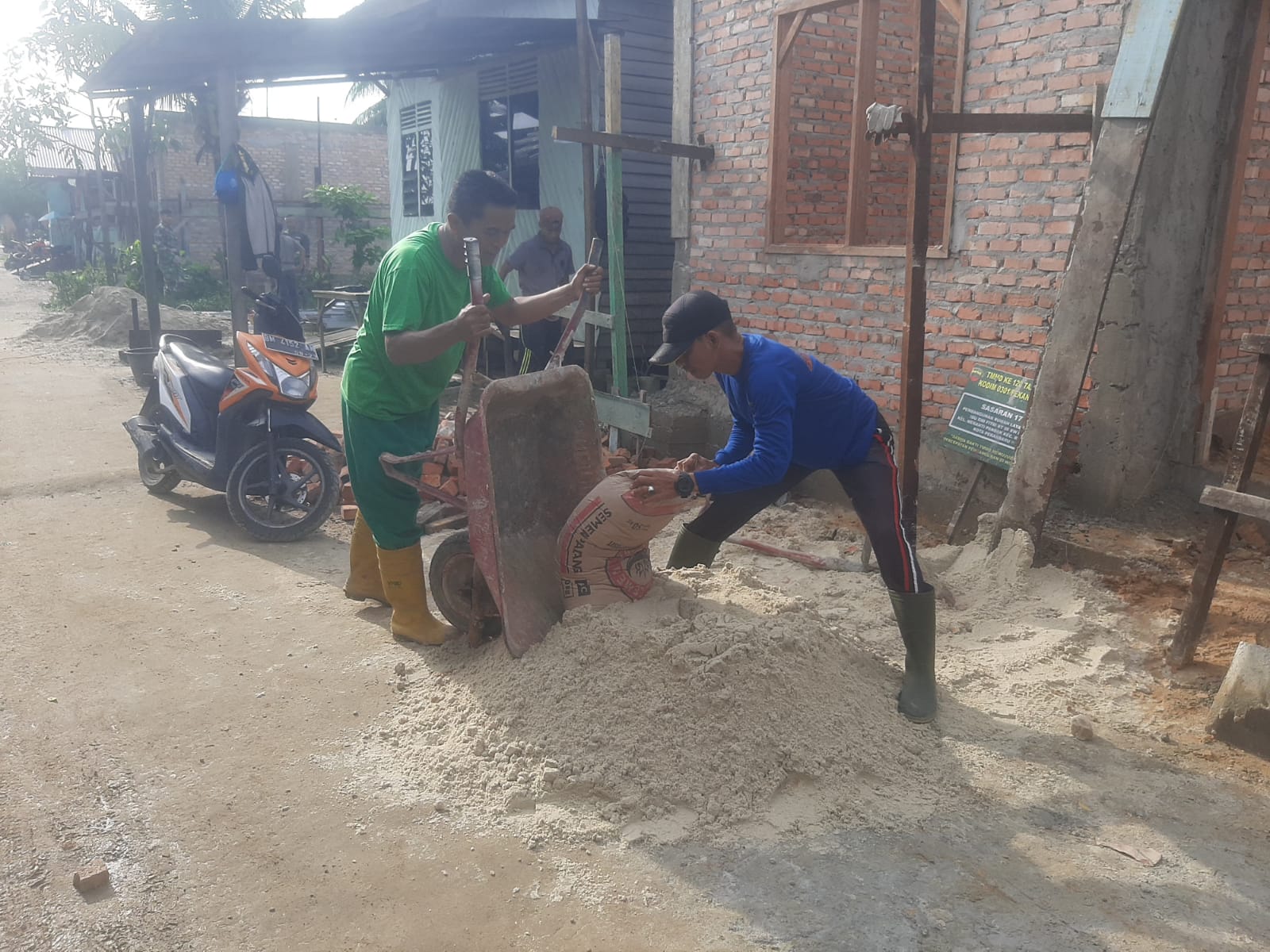 Adukan semen dan pasir sudah menjadi kebutuhan yang sangat penting untuk melakukan pekerjaan apa pun itu, baik pengecoran pada semenisasi dan perehaban rumah tidak layak huni yang menjadi pokok sasaran fisik program TNI Manunggal Membangun Desa.