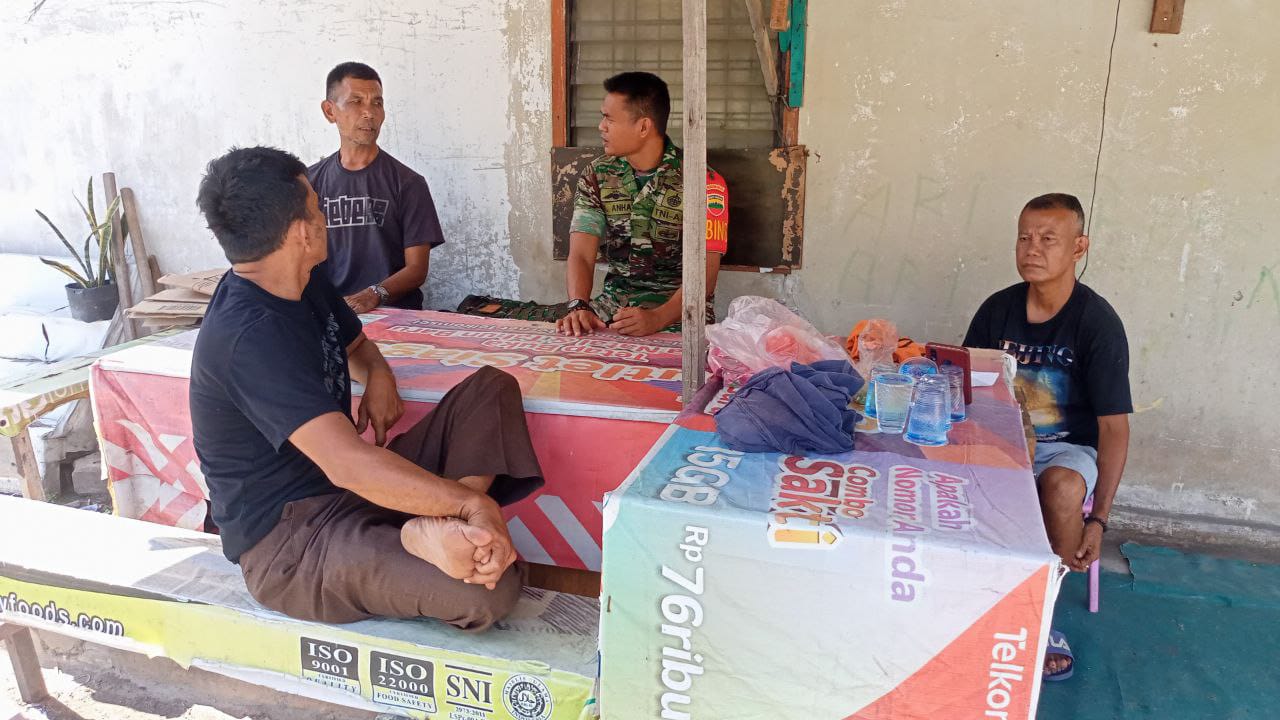 Sertu Parjo, Anggota Koramil 06/Sukajadi Kodim 0301/Pekanbaru melaksanakan komsos bersama warga di Jalan Beringin Kelurahan Sungai Sibam Kecamatan Binawidya, Jumat.