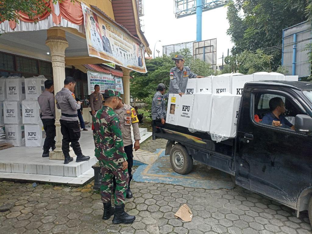 Babinsa Sertu Sutan Siregar bersama personil Satuan Brimob Polda Riau melaksanakan kegiatan patroli gabungan sinergitas TNI-Polri dalam rangka Pemilu 2024 di wilayah Kota Pekanbaru, Kamis.