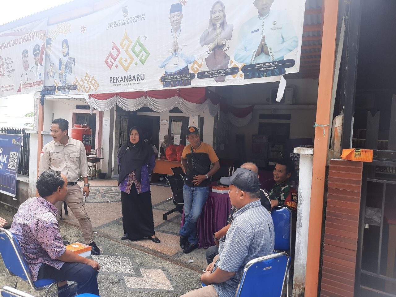 Babinsa Kelurahan Binawidya Serda Geri K Sinaga melaksanakan kegiatan rutin yang merupakan salah satu bagian tugas pokok yaitu berinteraksi secara langsung dengan Sekretaris Kelurahan dan warga binaan Jalan Melati III Kecamatan Binawidya, Pekanbaru,.