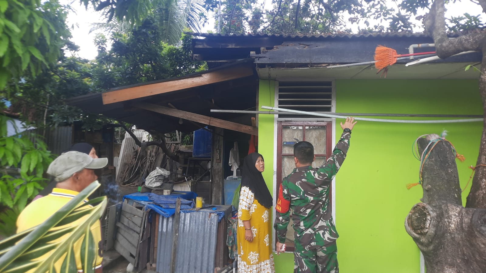 Babinsa Koramil 06/Sukajadi Kodim 0301/Pekanbaru, Serka Toni Efendi membantu melakukan pengecatan rumah salah satu warga bernama Ibu Marziah Perum Wadya Graha 1 RT 02 RW 07 Kelurahan Delima Kecamatan Binawidya, Rabu.