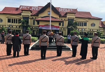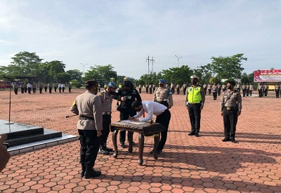 Komitmen anti narkoba, Kapolres Rokan Hilir AKBP Nurhadi Ismanto SH SIK bersama seluruh Pejabat Utama dan anggota Polres Rokan.