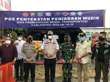 Bupati Rokan Hilir Suyatno bersama Kapolres Rohil AKBP Nurhadi Ismanto serta jajaran Forkopimda lainnya meninjau posko penyekatan.